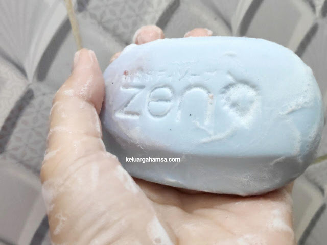 Sabun batang Zen Antibacterial sangat mudah dipegang, pas di tangan, apalagi bentuknya agak melengkung, sehingga tidak mudah lepas dari genggaman. Wanginya lembut dan ketika digosokkan ke badan busanya langsung banyak. Setelah mandi kulit terasa lebih halus dan baunya masih menempel.
